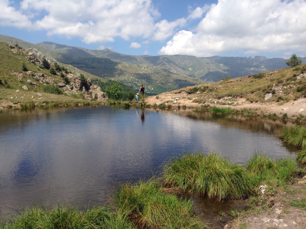 Nel piccolo specchio d’acqua vive una nutrita colonia di specie anfibie tra cui il raro tritone alpestre ombreggiato dall’imponente Pizzo d’Ormea alle nostre spalle.