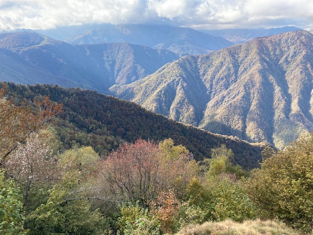 Da qui proseguiamo il percorso sulla destra, in leggera salita, con ampi scorci panoramici di rara bellezza sulla valle Strona e Mosso , che in questa stagione, autunno, rende il contorno assai magico e colorato.