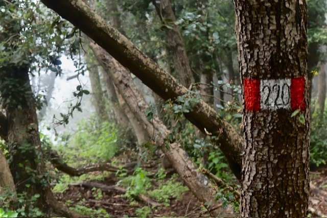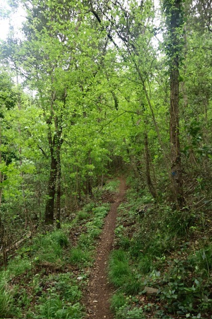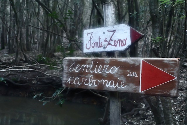 La discesa porta verso i boschi freschi di castagno e leccio che avvolgono Poggio, fino alla Fonte di Zeno, ristoro prezioso al termine della tappa.