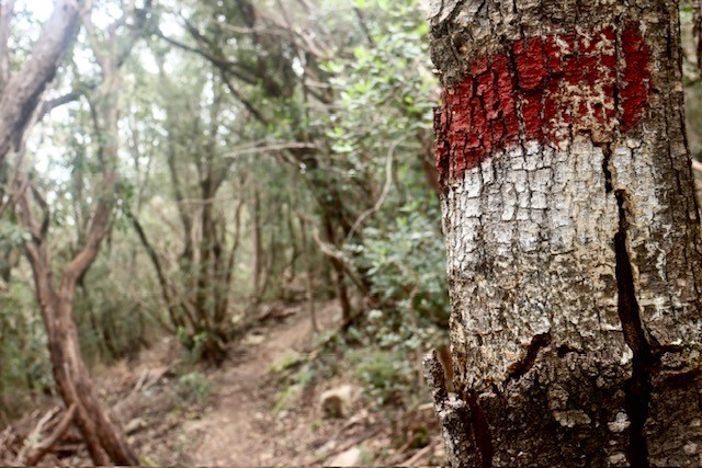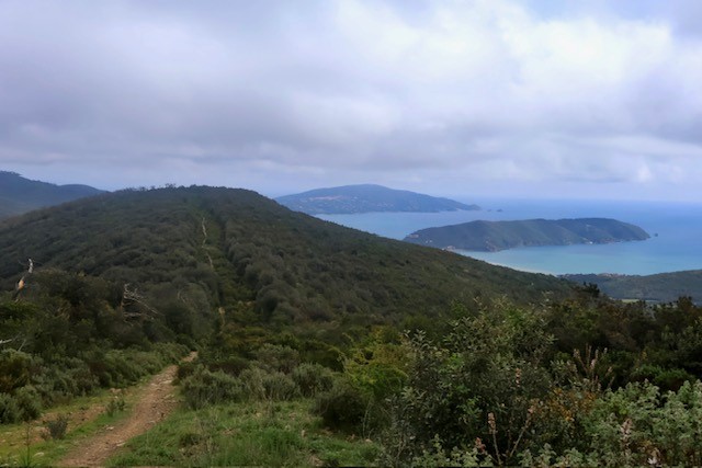 La seconda tappa è la più lunga e varia. Si parte immersi nei boschi, risalendo verso il Monte Perone (630 m) e seguendo poi i crinali che dividono i due versanti dell’isola.