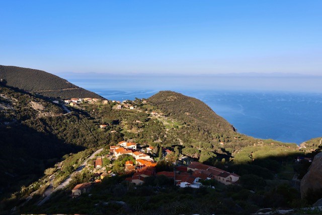 Da lassù si gode una doppia visuale: da un lato la costa settentrionale con Marciana Marina e Procchio, dall’altro i golfi meridionali di Marina di Campo e Lacona.